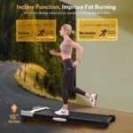 Compact Treadmill for Easy Movement: The compact under desk treadmill is just 4.5 inches thick even with incline function, it is still very thin and light. The treadmill has two front wheels, allowing you to easily move and place it under a desk, bed, or sofa. Our under-desk treadmill requires no installation and is ready to use right out of the box.