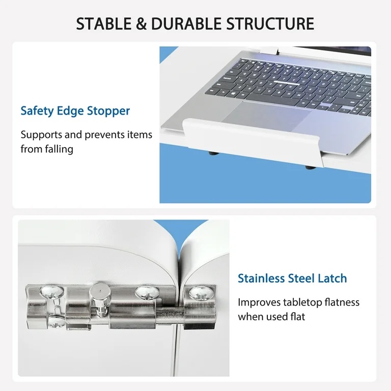 Enhanced Safety with Stainless Steel Latch – Unlike competitors, we add a stainless steel safety latch that prevents the tabletop from tilting when in a flat position. The latch is rust-resistant, smooth, and easy to operate.
