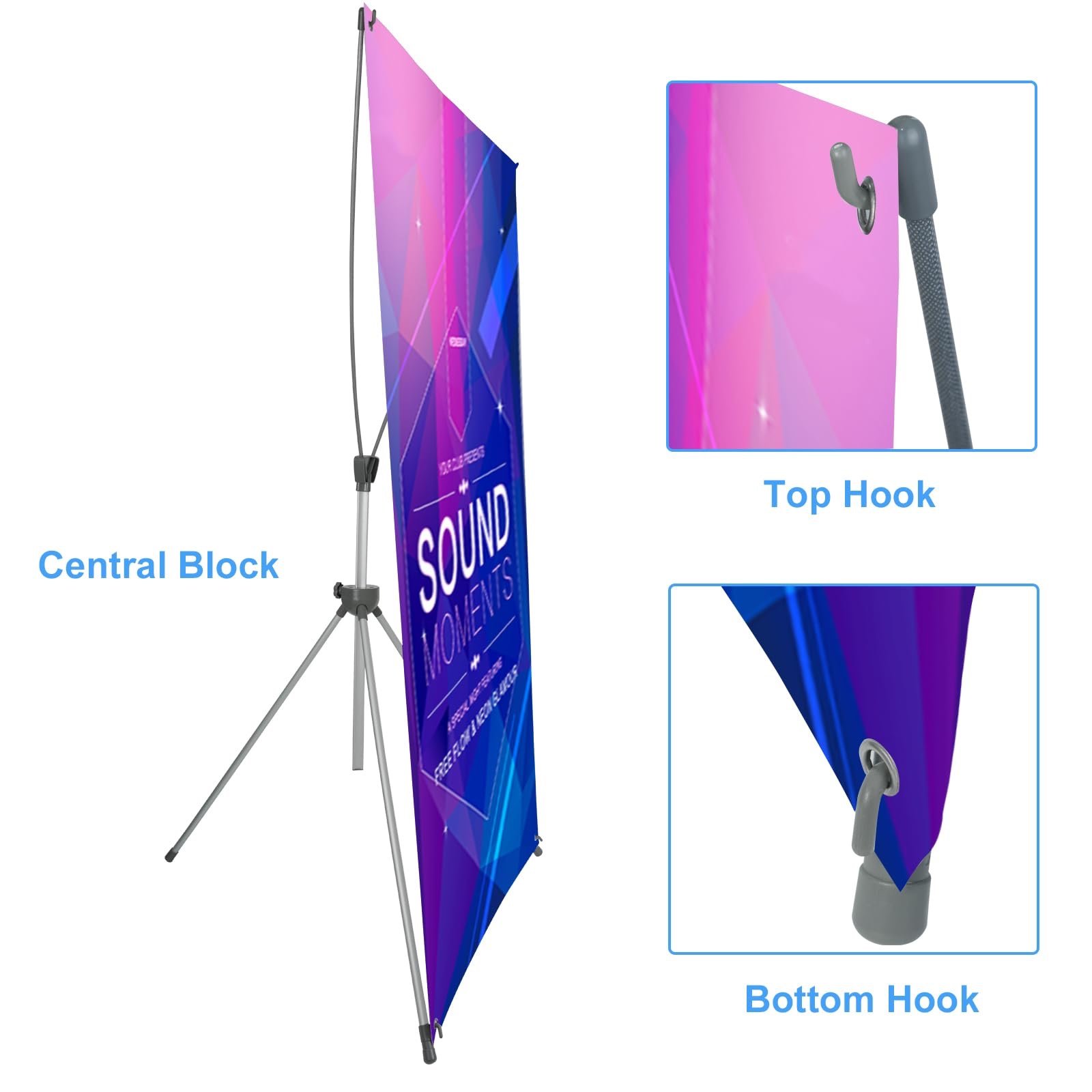 Fortified central module and the high quality aluminum alloy frame make the adjustable X banner stand stronger and it’s easy to hold up larger poster size from 23″X63″ to 32″X78″.