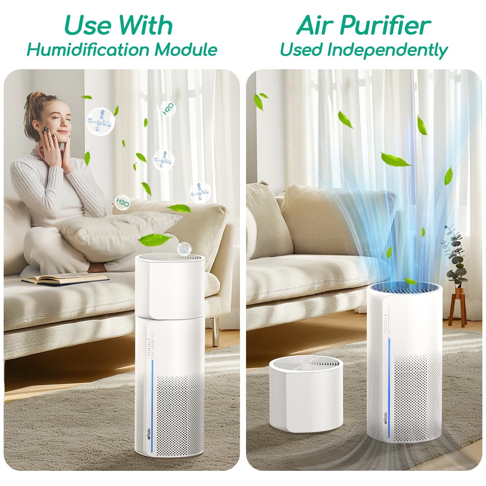 - 🌿【Versatile 2-in-1 Design】 It an air purifier and a humidifier in a single unit. The primary function is air purification, while the detachable humidifier module attaches securely to the air purifier. The humidifier module is independent and removable, allowing the air purifier to function separately. (Note: The humidifier cannot operate independently.)
