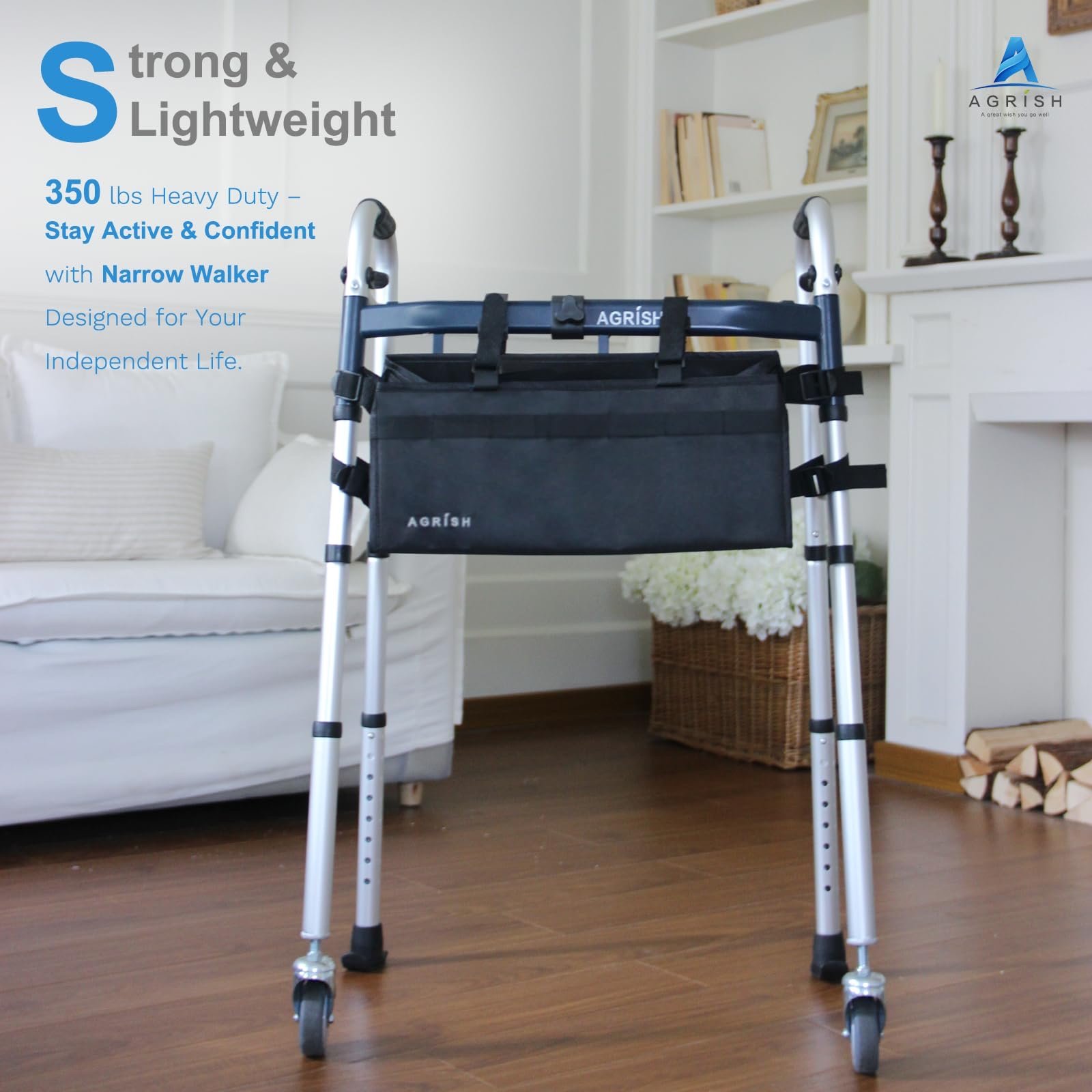 Convenient Storage Bag: Maximize elevate your convenience with Agrish Narrow Walkers with Storage Bag – keep essentials accessible anytime, anywhere. Effortlessly gather and transport your belongings with ease