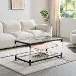 Modern Design: The coffee table boasts a double-layered glass surface, with the clear glass, adding to the table’s futuristic and edgy look. This design is not only functional but also beautiful, adding a sense of sophistication to any room it’s placed in.