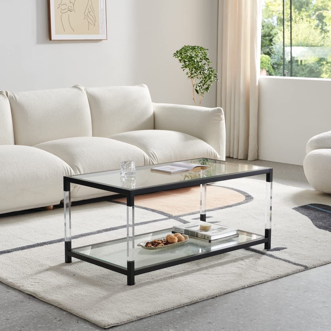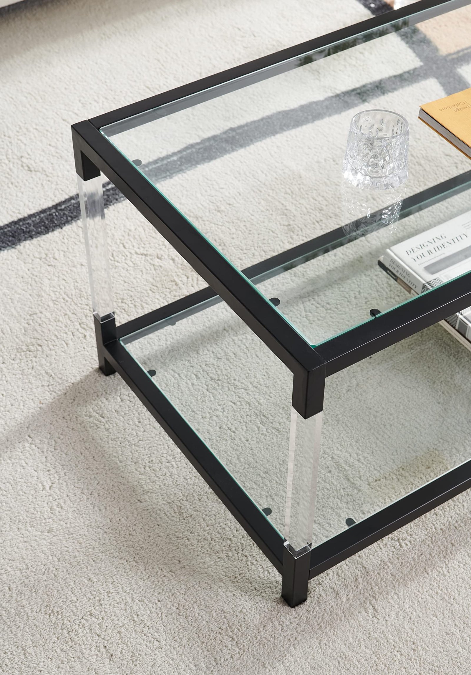 High-quality Materials: Thick tempered clear glass top, a fine chrome finish metal frame, and pure acrylic legs. These materials ensure durability, stability, and a sleek modern aesthetic that will elevate any living space.