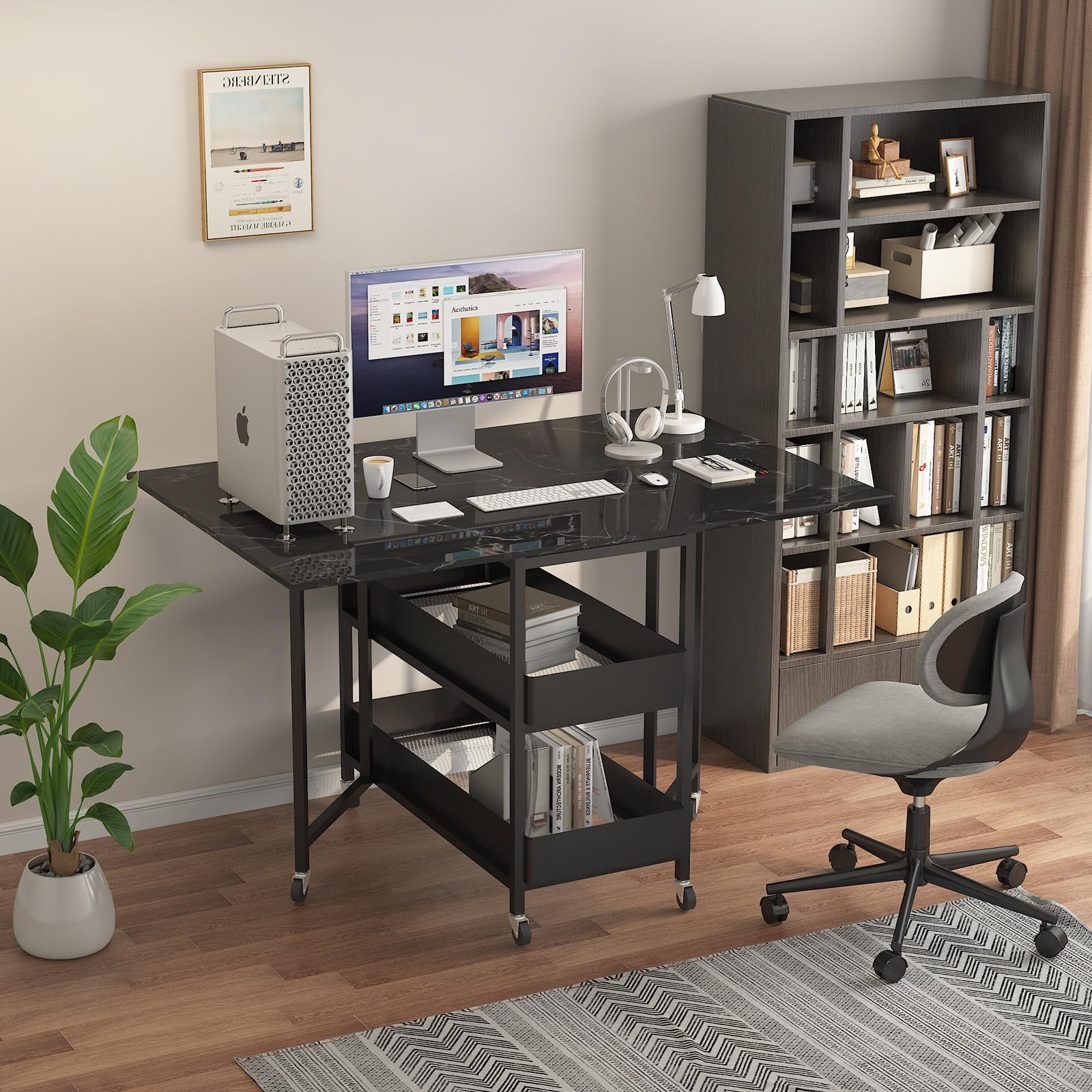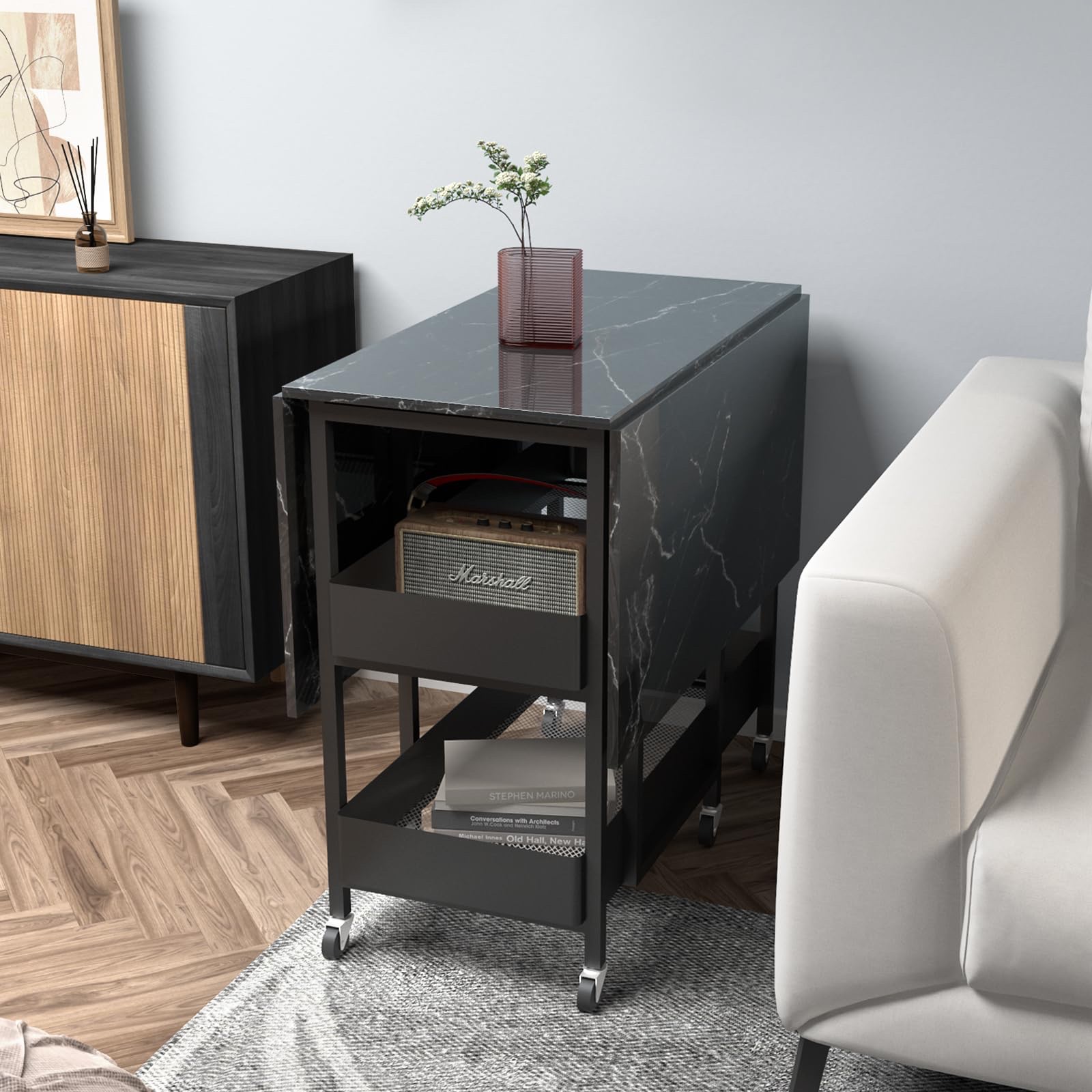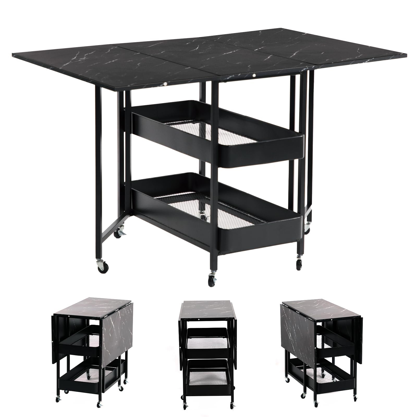【Extendable Drop Leaf & Double-Layer Storage】The drop leaf design allows you to extend or collapse the table as needed. The double-layer storage shelf provides extra space for organizing items, making it ideal for small apartments, kitchens, or dorm rooms.