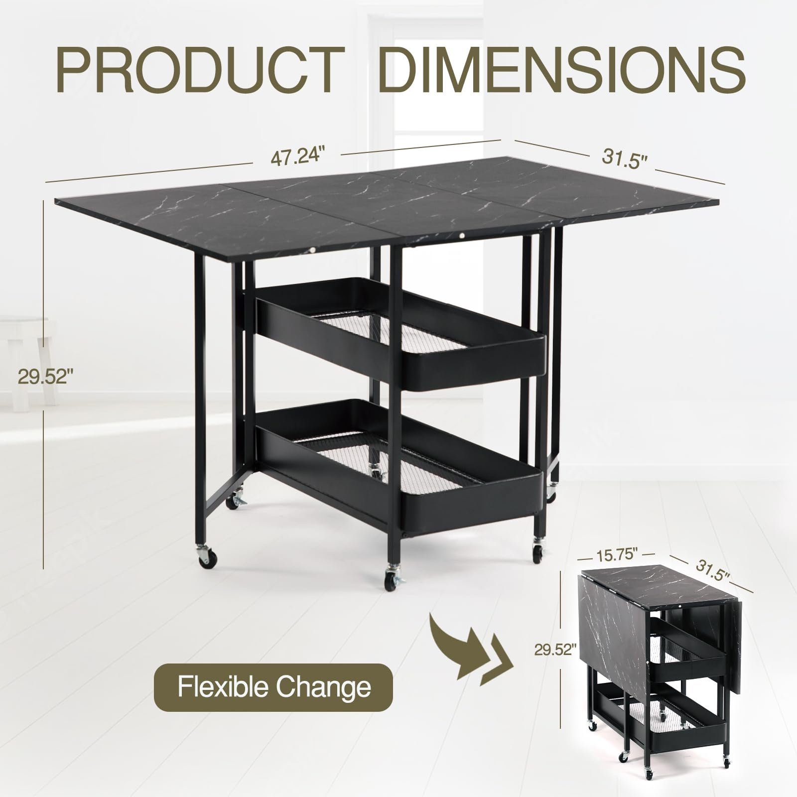 【Multifunctional & Space-Saving Design】This folding dining table offers 3 size options: fully unfolded (47.25″W×31.5″D×30″H), half unfolded (31.5″W×31.5″D×30″H), and fully folded (15.75″W×31.5″D×30.1″H). Perfect for small spaces, it can be used as a dining table, office desk, craft table, or entryway table, adapting to your changing needs.