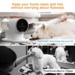DOG GROOMING VACUUM with 12000PA STRONG SUCTION POWER- with a strong suction power of up to 12000pa, our dog grooming kit with vacuum function can suck up to 99% of pet hair into the dust box as you groom, preventing pet hair from spreading and creating a mess. Say goodbye to hair-covered furniture and hello to a tidy, fur-free home.