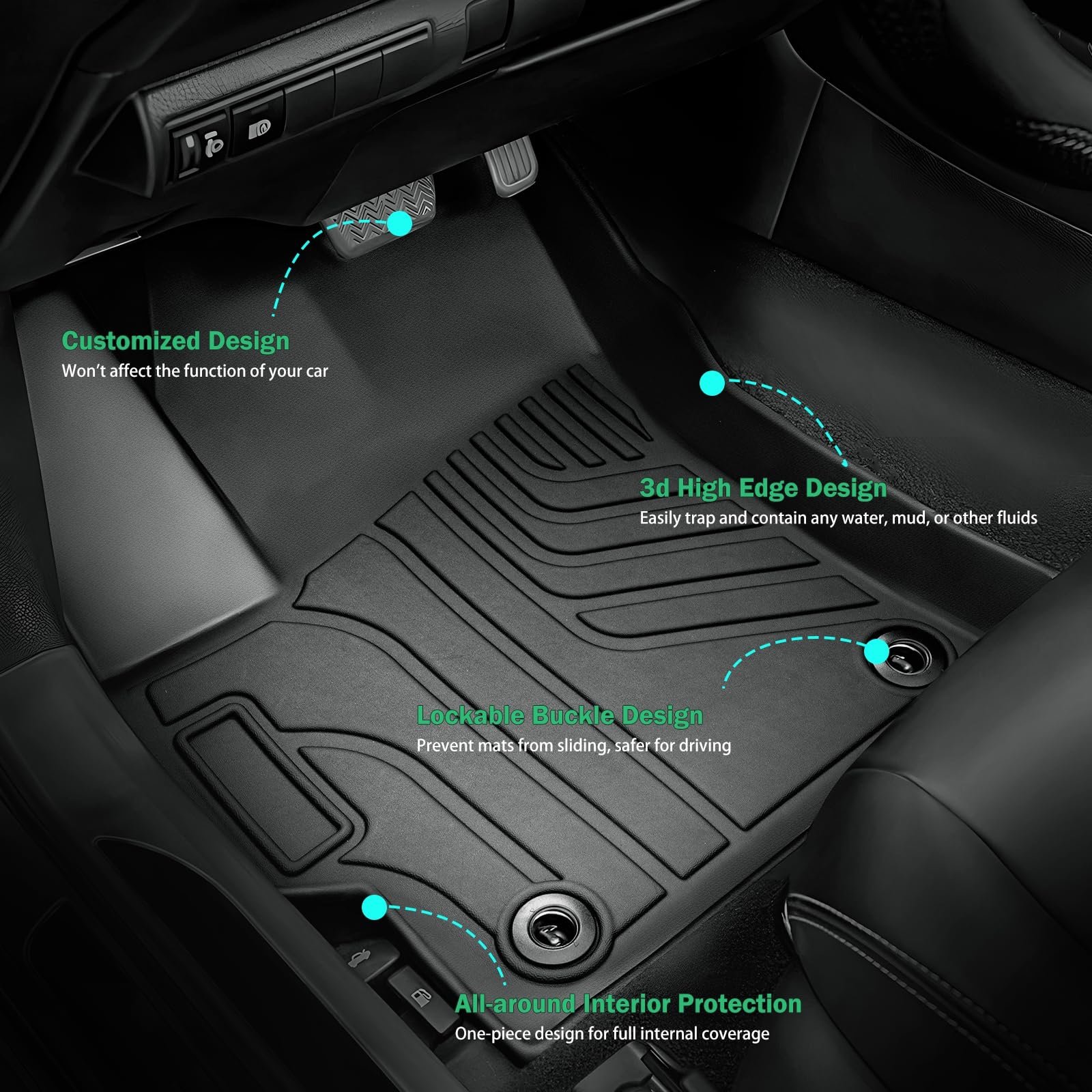 【Anti-Slip & High Edge】The Epltion Hyundai Elantra floor mat is designed with a buckle on the back that holds it firmly in place. The texture of the liner keeps things from moving around easily, and it grips enough. The 3D high-edge design of the edge can wrap liquids and prevent leakage and water penetration.