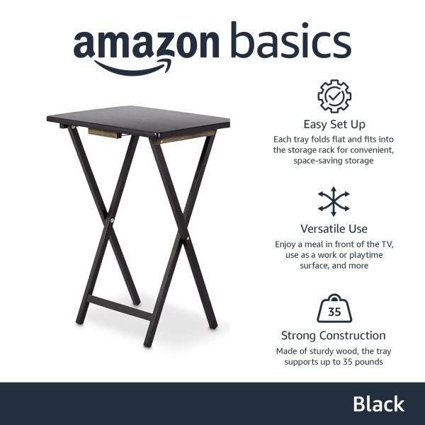 Amazon Basics Portable TV Dinner 4-Pack Rectangular Folding Tray Table with Storage Rack