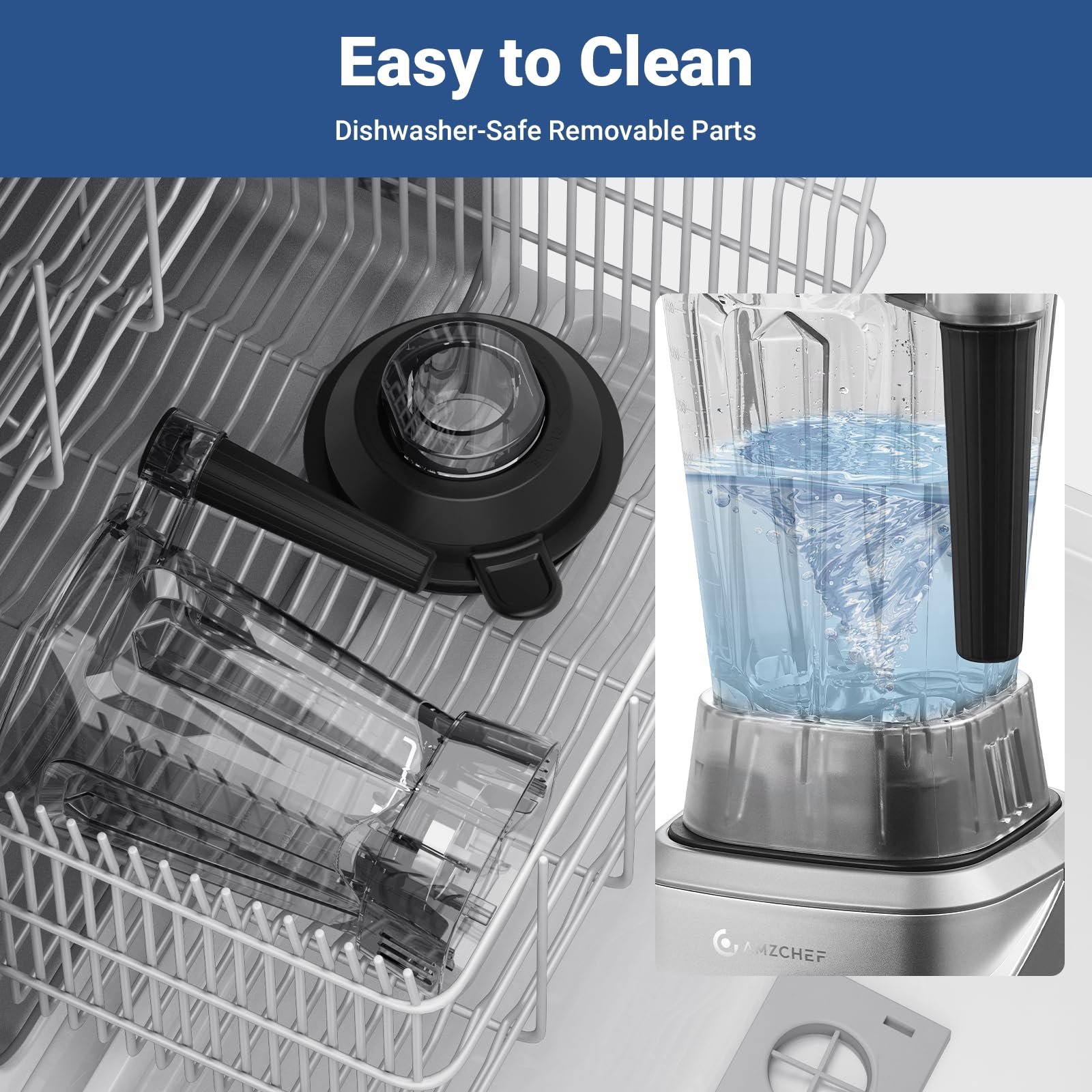7 FUNCTIONS & 8 SPEEDS WONDER BLENDER: Let’s experience our new blender which has 7 functions all controlled on the easy-to-read panel. Easily make Extractions, Smoothies, Frozen Drinks, Spreads and Bowls with the touch of a button. This smoothies blender also has a 8-speed control key to meet all your needs. Amzchef blender is your Wonder Kitchen Helper