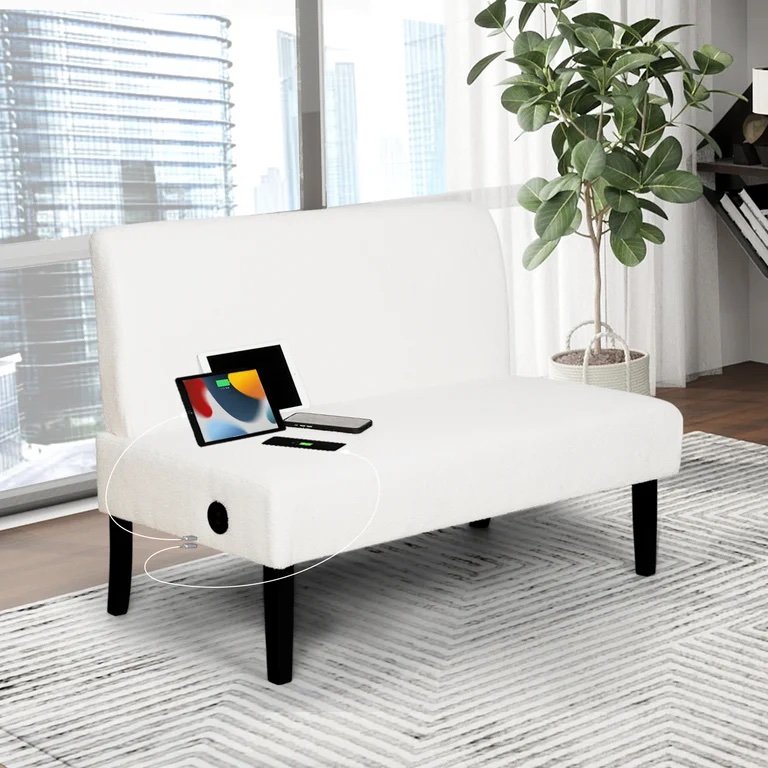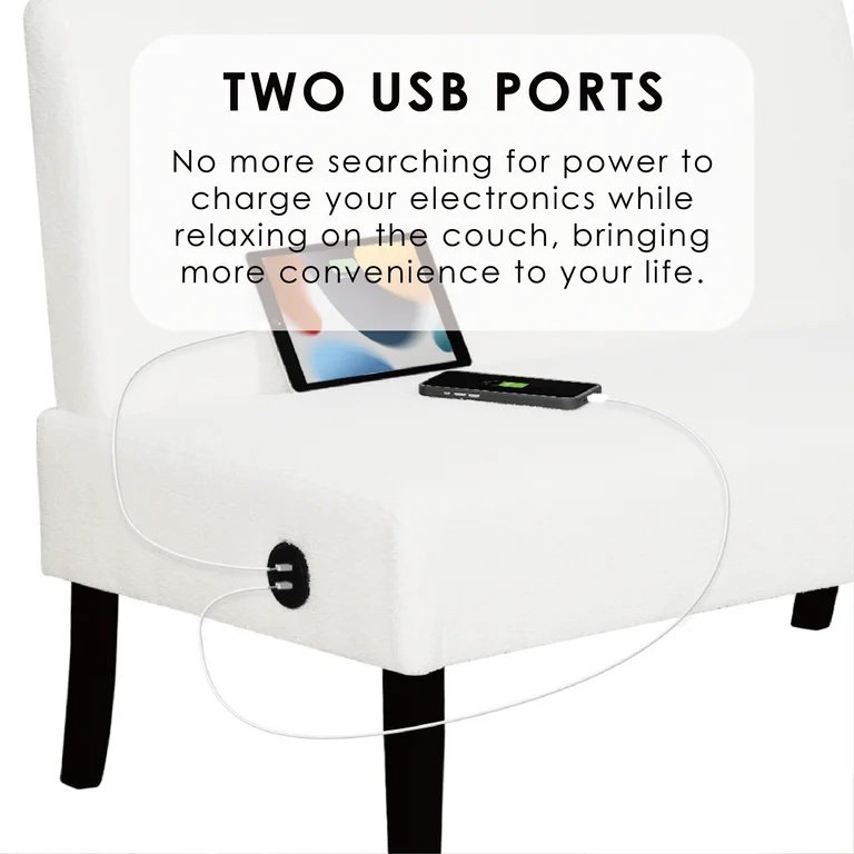 [2 USB Ports] :This small couch features 2 USB charging ports on one side, allowing for long-term power supply while playing games or watching videos.