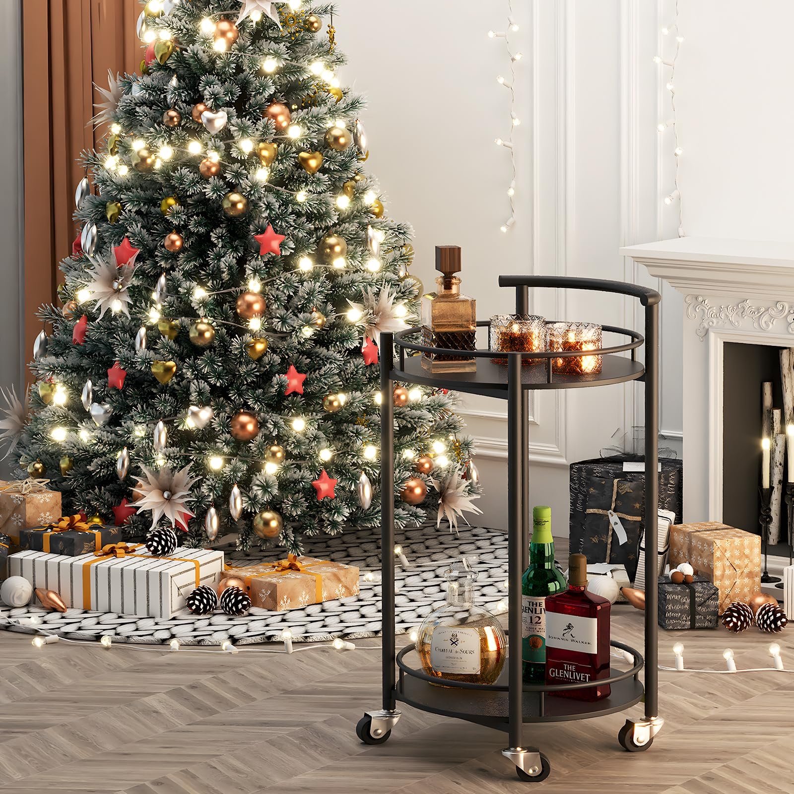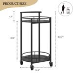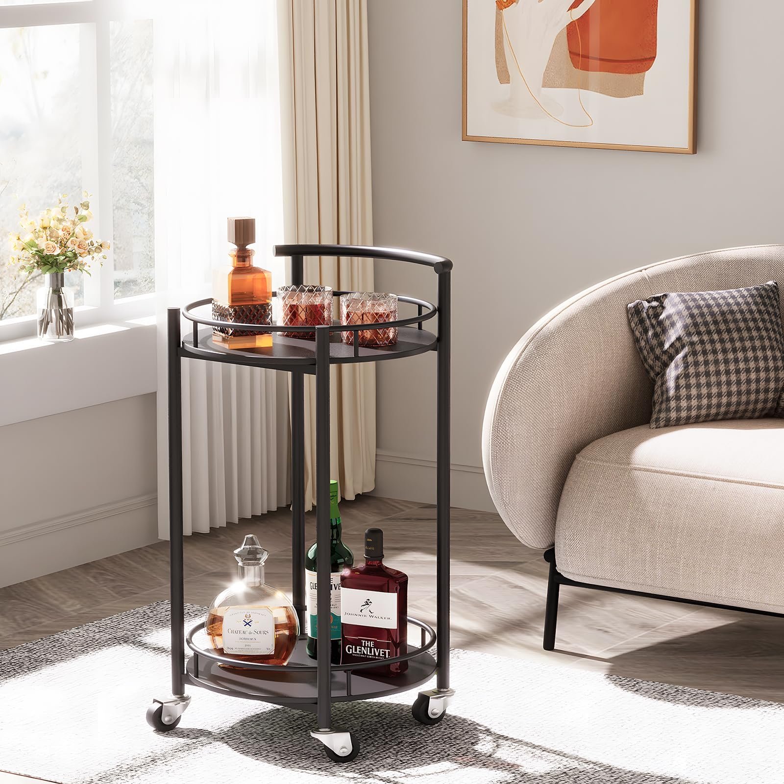 【SAVE SPACE】This small bar cart measures 14.9*14.9*30.71 inches,perfect for small space. It has two tiers of storage, and both shelves can be moved,so you can use it as a serving tray.You can put fruit ,snacks,Coffee, glasses,etc on the top layer.Bottom shelf can hold wine, jam, etc.