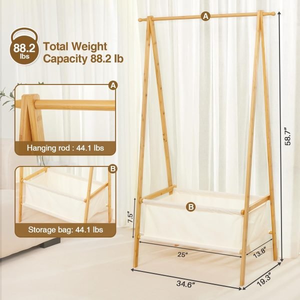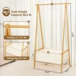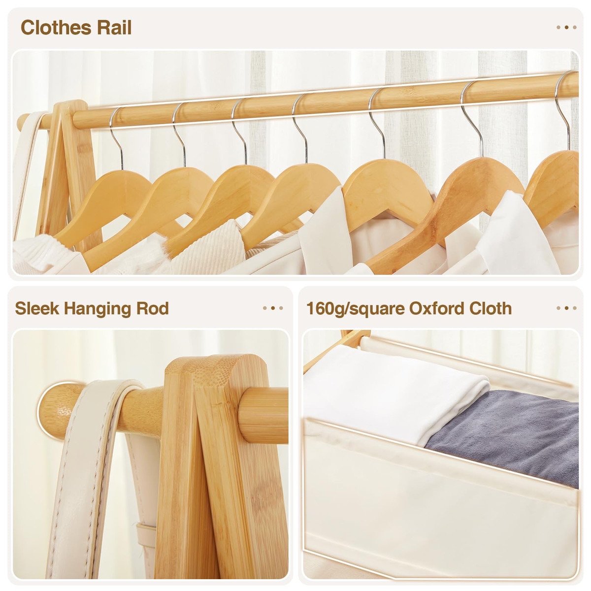 Bamboo Clothes Rack with Storage Box, Garment Rack