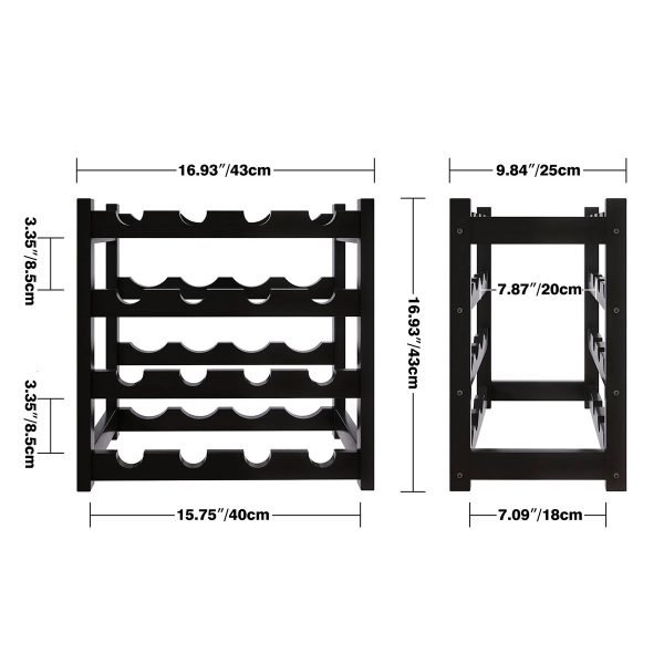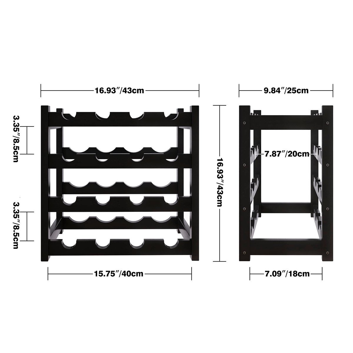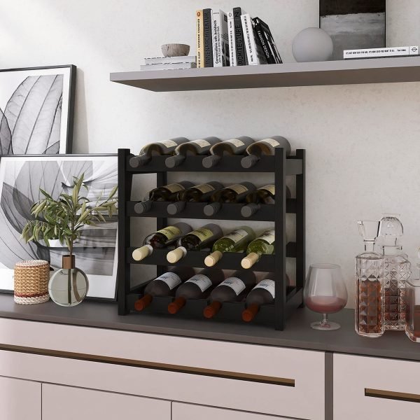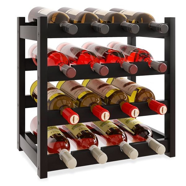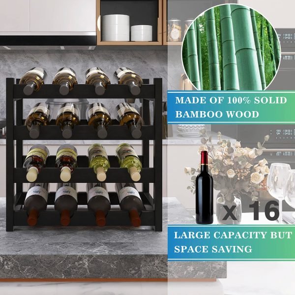 ? LARGE CAPACITY BUT SPACE SAVING: 4 bottles on each shelf, this nice 4-tier wood wine rack can easily stock 16 bottles of wines in total. Boasting a narrow vertical design, it is a wine rack for space efficient storage in your living room, kitchen, dining room, pantry or wine cellar etc.