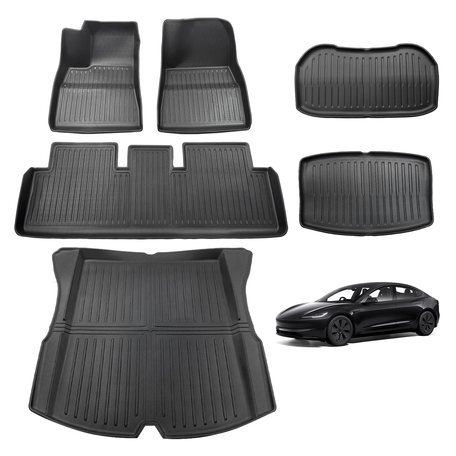 Perfect Fitment: BestEvMod compatible with Tesla Refreshed Model 3 Highland Full Set Mats are designed according to the 3D laser scan data in 1:1. Fit your Model 3 Highland Refresh 2024 perfectly. (Package includes 1*Floor Mats Set, 1* Upper+Lower Trunk Mats, 1* Frunk Mat.)