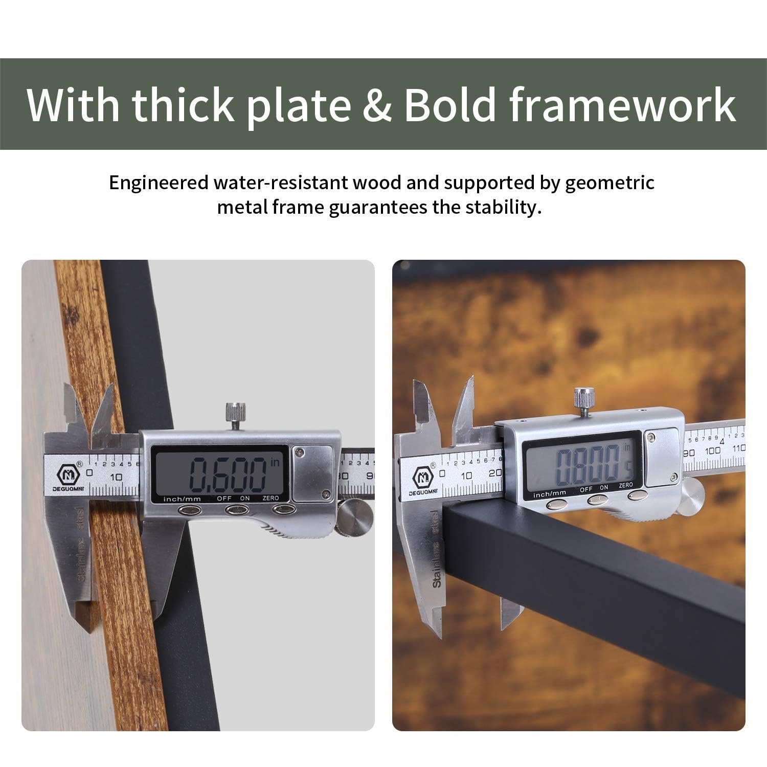 • HIGH QUALITY & DURABLE This home office desk is made of a thick engineered Wood desktop with scratch-resistant, anti-collision, and waterproof design, which protects the office desk surface from daily wear and tear. The thick powder-coated metal frame and track-legs construction make the desk very strong, so you can use it for many years.