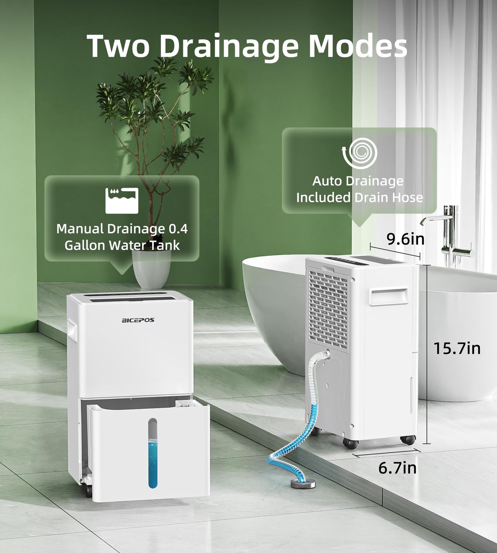 Bicepos 1500 sq.ft Dehumidifier for Home with Drain Hose
