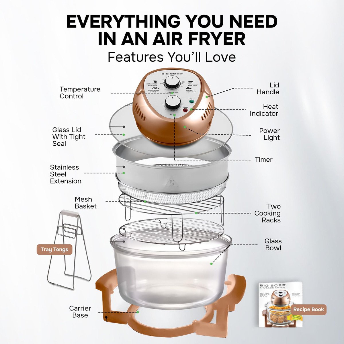 Big Boss Air Fryer, Large 16 Quart Oil-Less AirFryer