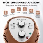 simple & easy operation with 2 dials, temperature control, timer with auto shutoff and popular food directions right on the unit.