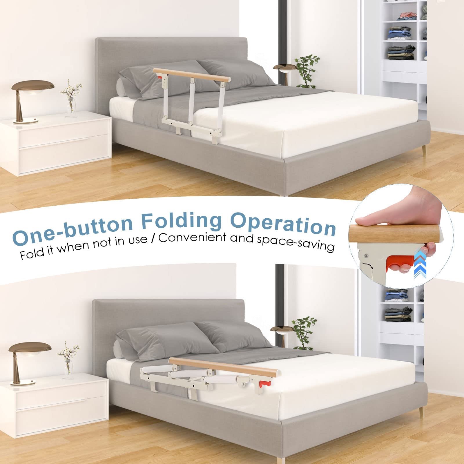 - Home care assistance devices for elderly adults. BOEASTER bed railing is designed for daily using, it can be easily folded down by clicking the red button when not in use. Raising up bed assist bar will offer a whole day protection from falling out of bed.