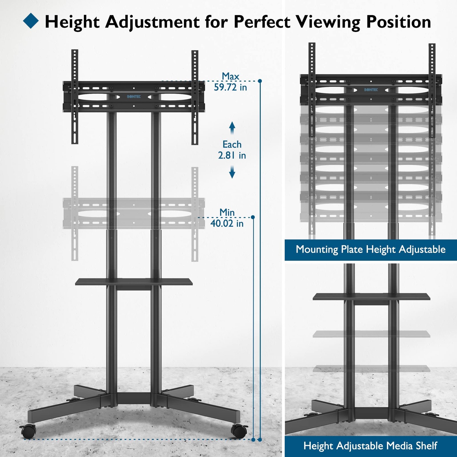 BONTEC Height Adjustable Mobile TV Cart, Tilt Rolling