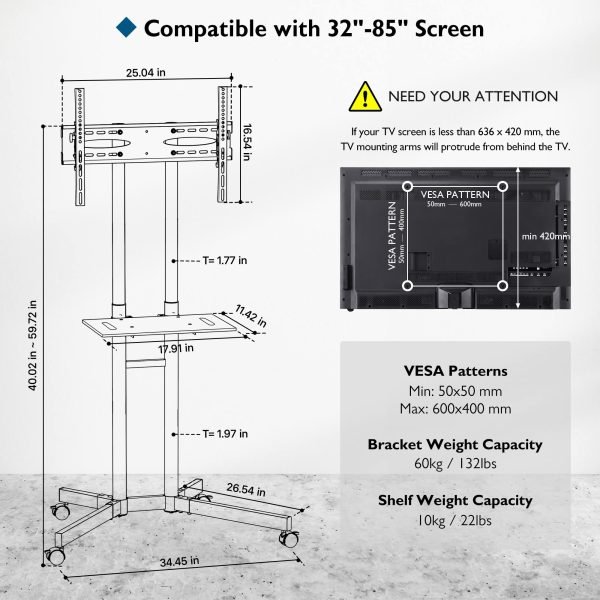 - UNIVERSAL COMPATIBILITY: Fits most 32-85 inch flat and curved screens with VESA patterns from 50x50mm to 600x400mm. Supports TVs weighing up to 132 lbs.