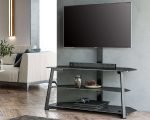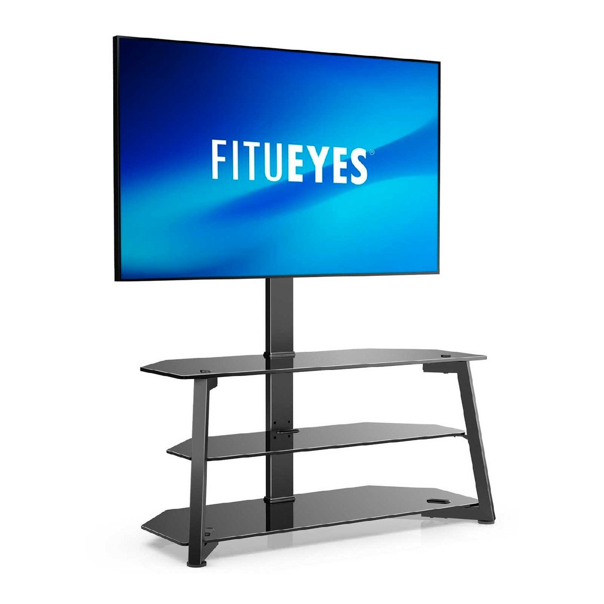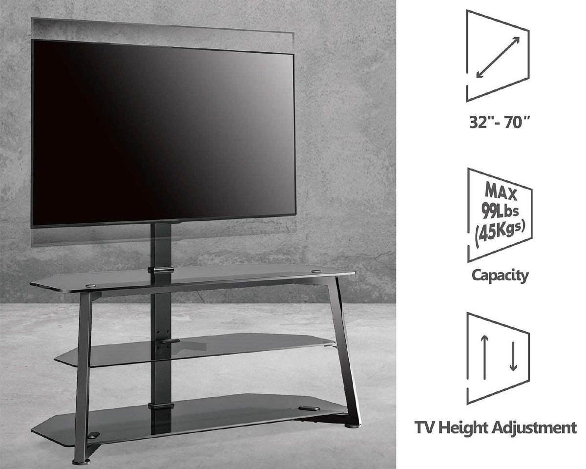 HEIGHT ADJUSTABLE TV STAND: This floor-mounted TV console stand for larger TVs has 3 levels of height to accommodate different height requirements. You can set the bracket to the right height as needed during installation and get a comfortable visual effect. No need to drill your beautiful wall.CABLE MANAGEMENT AND SPACE SAVING: The FITUEYES entertainment bracket holds DVD storage, receivers, PS3, PS4, bar speakers, game consoles, and more. The second shelf is adjustable to accommodate different heights of your media devices. This floor-to-ceiling corner TV stand is truly a space-saving piece of furniture for your bedroom, living room, rental house and dorm room, and the cable management helps keep your wires behind the pole neat and organizedShow more