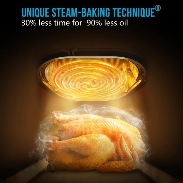 [Indulge In Quick And Healthy Meals]?Bear air fryer oven with unique steam-baking technique and 4d stereo hot air circulation – achieve perfect golden finish, crispy, tender, and up to 85%-90% less oil results every time!