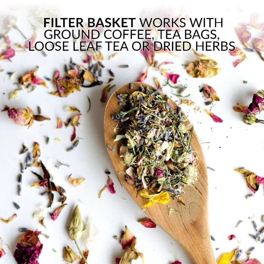 ? FILTER BASKET & SHOWER HEAD: The removable filter basket works with fresh ground coffee, tea bags and loose leaf teas, while the shower head is designed for complete saturation and optimal flavor extraction.
