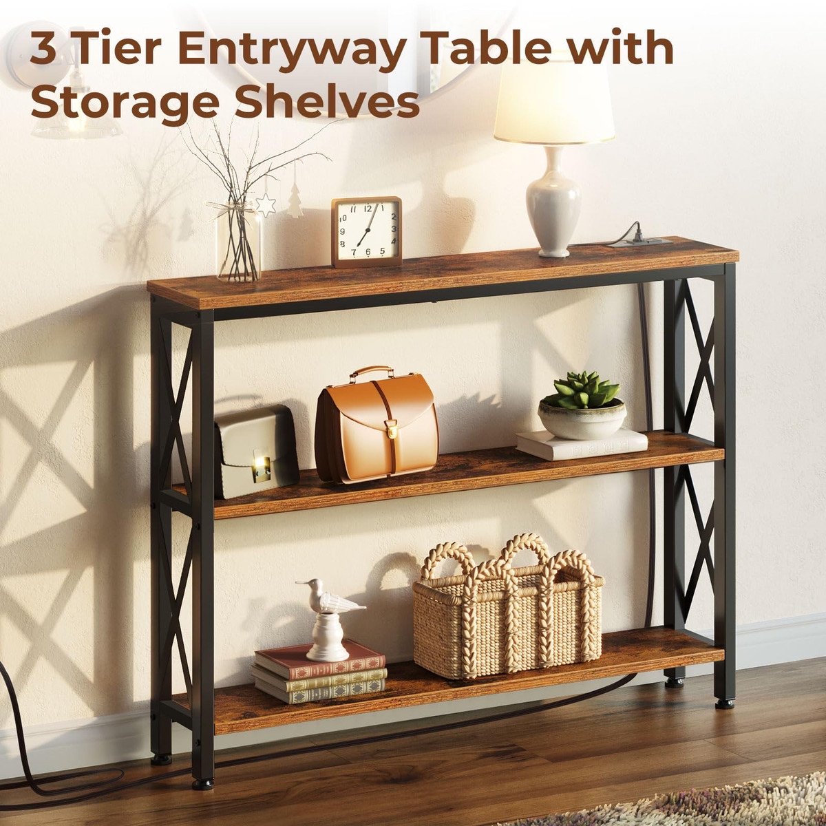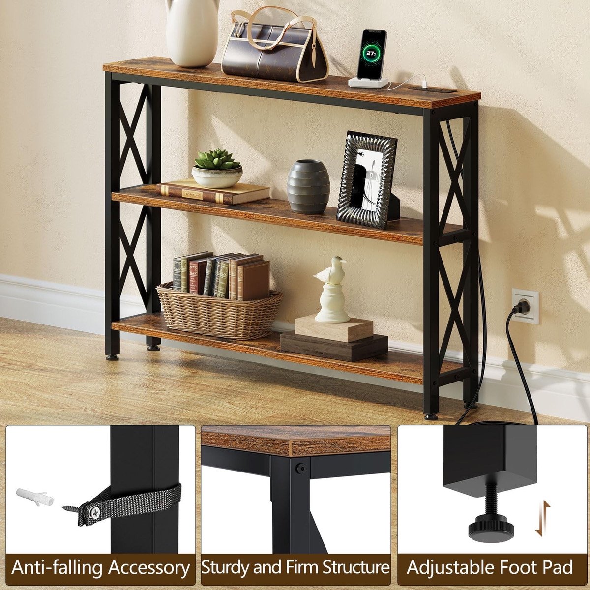 Stable Metal Frame & Adjustable Pads – The sofa table with storage shelves made of particle board and metal frame, which not only provides farmhouse and industrial looks, but also ensures durability and stability. 4 adjustable feet pads can protect your floor from scratches and enhance stability on uneven surfaces efficiently