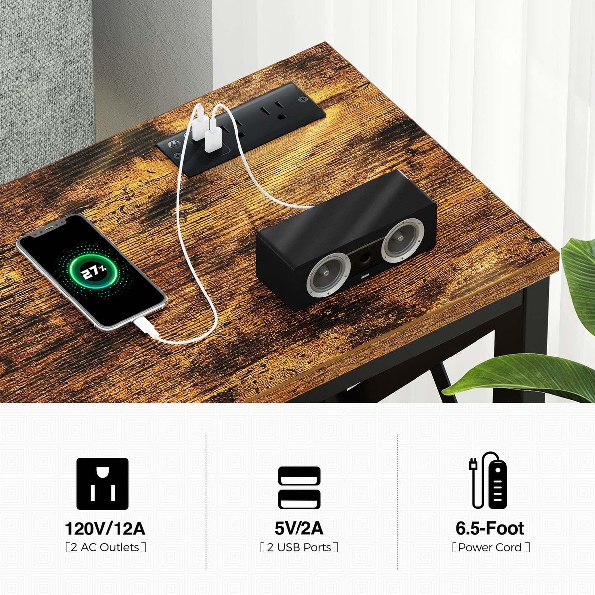 Sofa Table with Charging Station – 2 Standard Plug Outlets & 2 USB Ports with Cable Management 6.5ft long power supply cord, which help you charge your phone, tablet, lamp, and game console at the same time