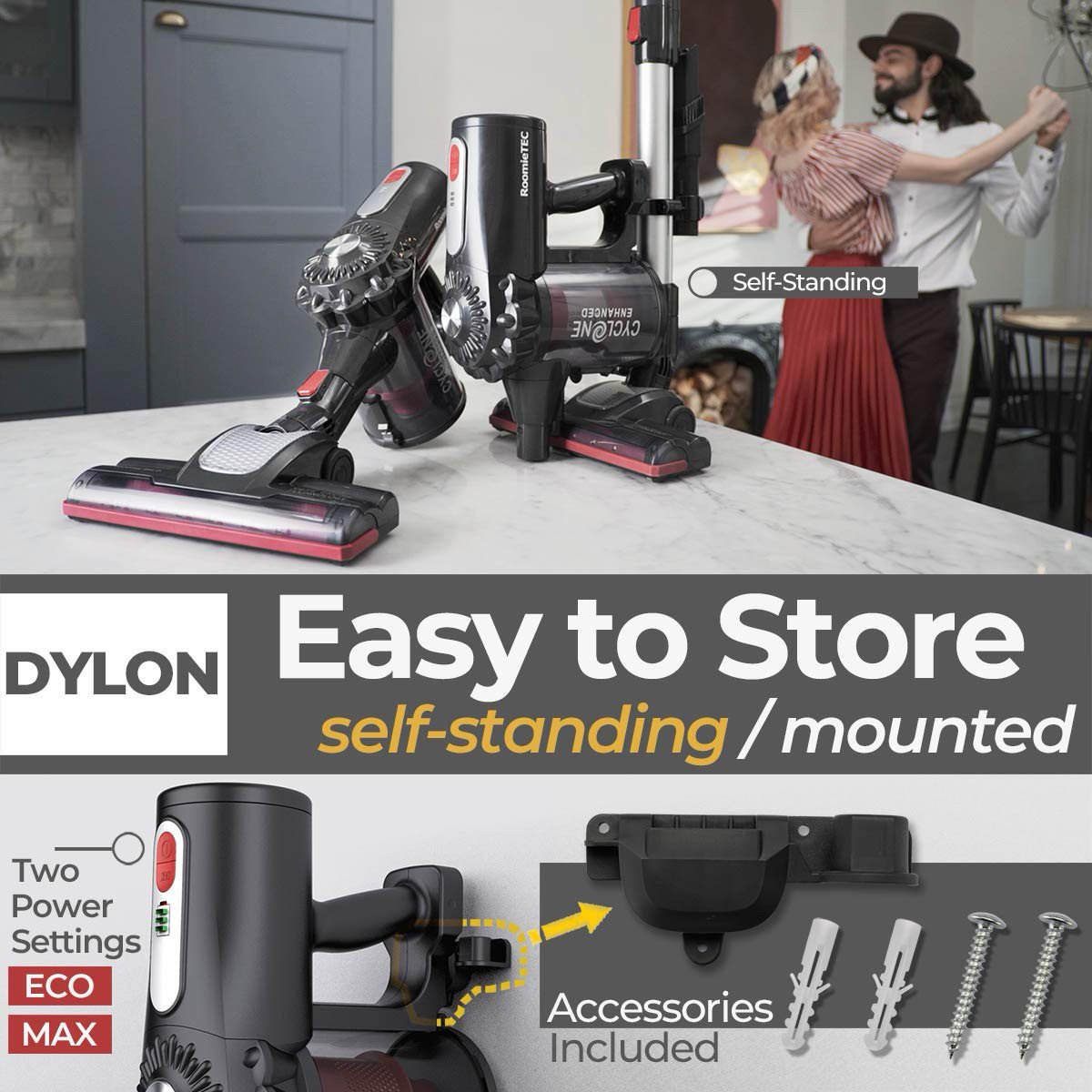 Self Standing Feature – the vacuum stands on its own when you need to leave it temporarily or store it for recharge. It will not fall easily as comparing to other stick vacuums, and it does not require drilling the wall for storage
