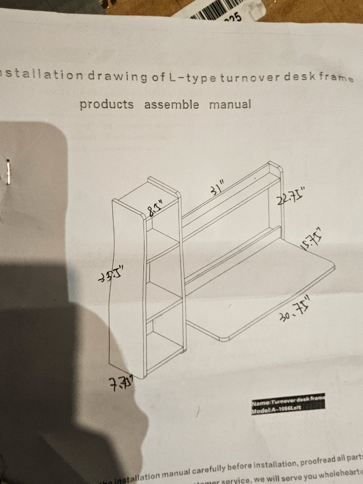 DescriptionBrand new L-type wooden turnover desk frame, perfect as study or laptop table, compact with storage shelves.