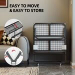 Easily folds in half to a compact 12.8” thickness for convenient storage in closets, under beds, or in small spaces. Smooth-rolling wheels make moving and storing simple.