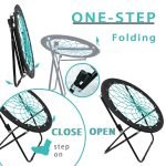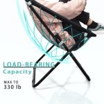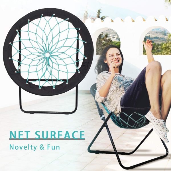 2. Sturdy Construction: Enjoy relaxation with peace of mind, thanks to the strong and durable elastic rope chair and rust-proof steel pipe bracket of the folding saucer chair. Designed to withstand up to 330 lbs, this bowl chair ensures long-lasting use.