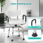 - COMFORT AND CONVENIENCE: Equipped with removable armrests and backrest, this shower chair combines versatility and convenience. The armrests and backrest are padded with EVA, which is both comfortable and easy to keep dry, easily adapting to different bathing needs.