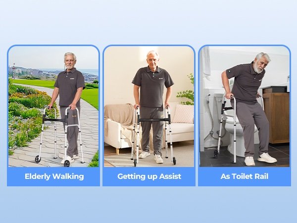 Simple and Convenient: With a one-click folding mechanism, this folding walker transforms from a reliable assistive device to a compact walker, making storage a breeze. The rolling feature makes it easy for both users and caregivers to navigate daily activities.