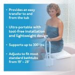 ? EASY TRANSFER INTO THE TUB. Simply sit on the outside part of the portable shower transfer bench and slide the legs around to the inside bath side