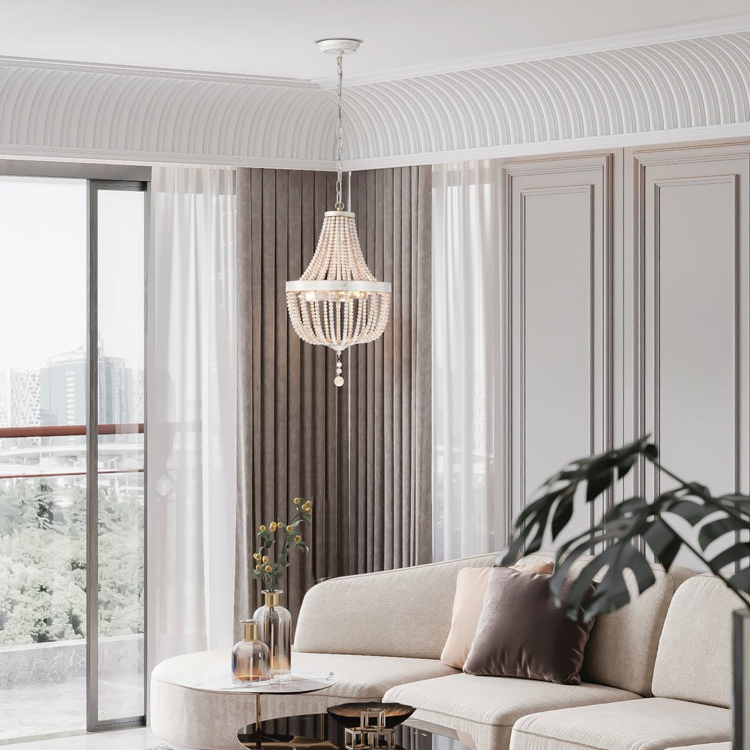 Boho wood bead light with crafted of metal in a classy finish give the space a sense of fun and exoticism perfect for any of your interior design rules, the wood bead 3-light chandelier makes you feel embracing the natural world and injecting creativity and energy into your interior, your guests will enjoy the elegant bohemia style always.