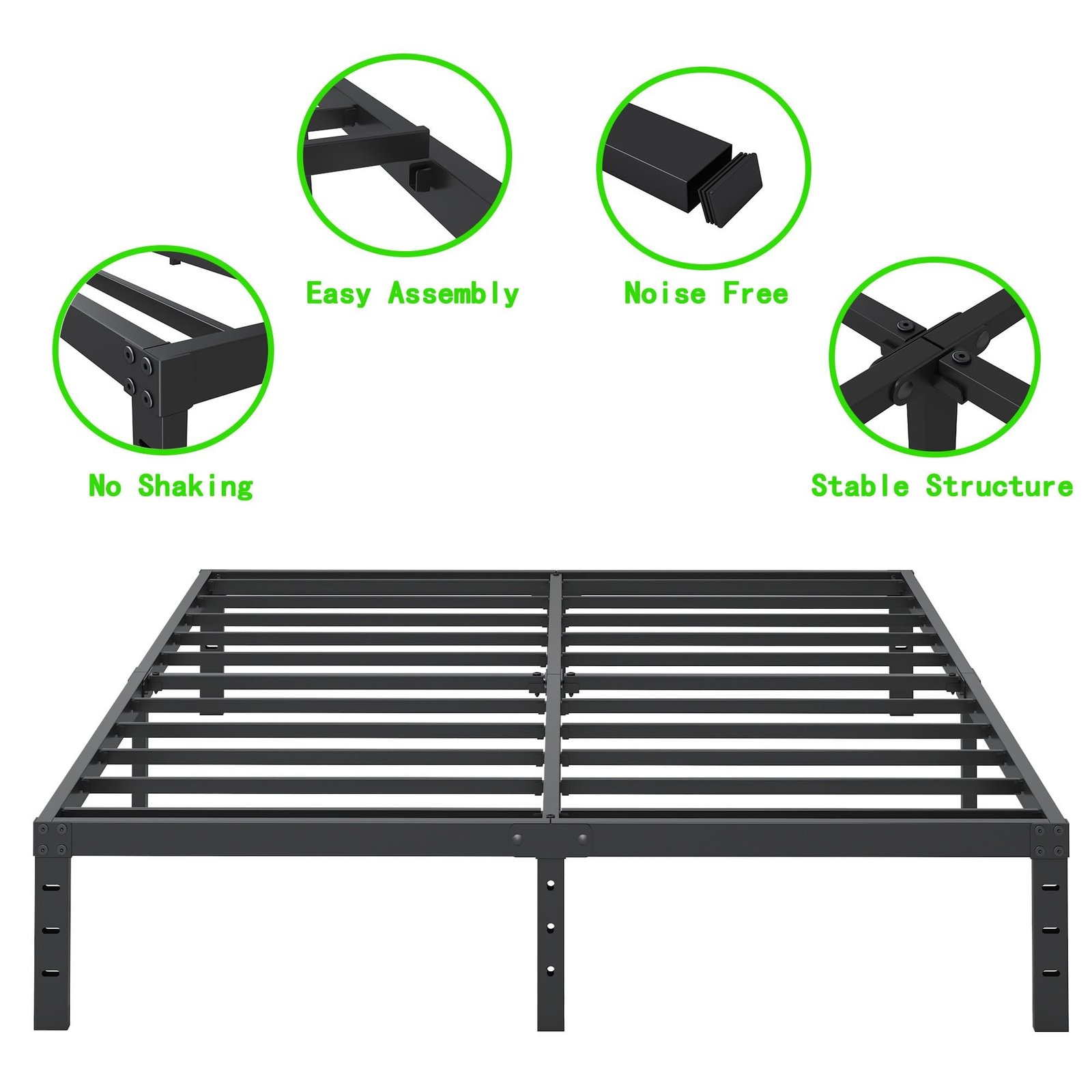 Heavy Duty: King size bed frames have reinforced steel support slats, 2500lbs of weight capacity, noise free, durability and stability.