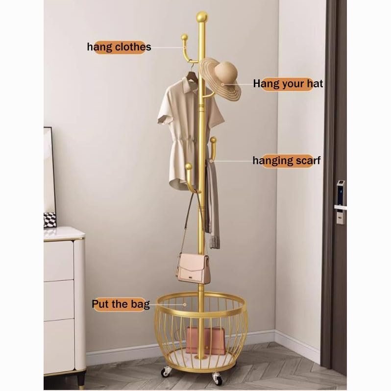 Convenient storage: The coat rack has good accommodation and can stack multiple clothes at the same time and hang them vertically to make full use of space and rationally use every inch of space. The hollow storage basket at the bottom is convenient for storing clothes and can also be used as a storage basket for dirty clothes.