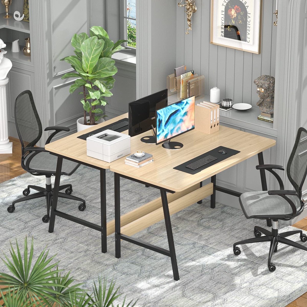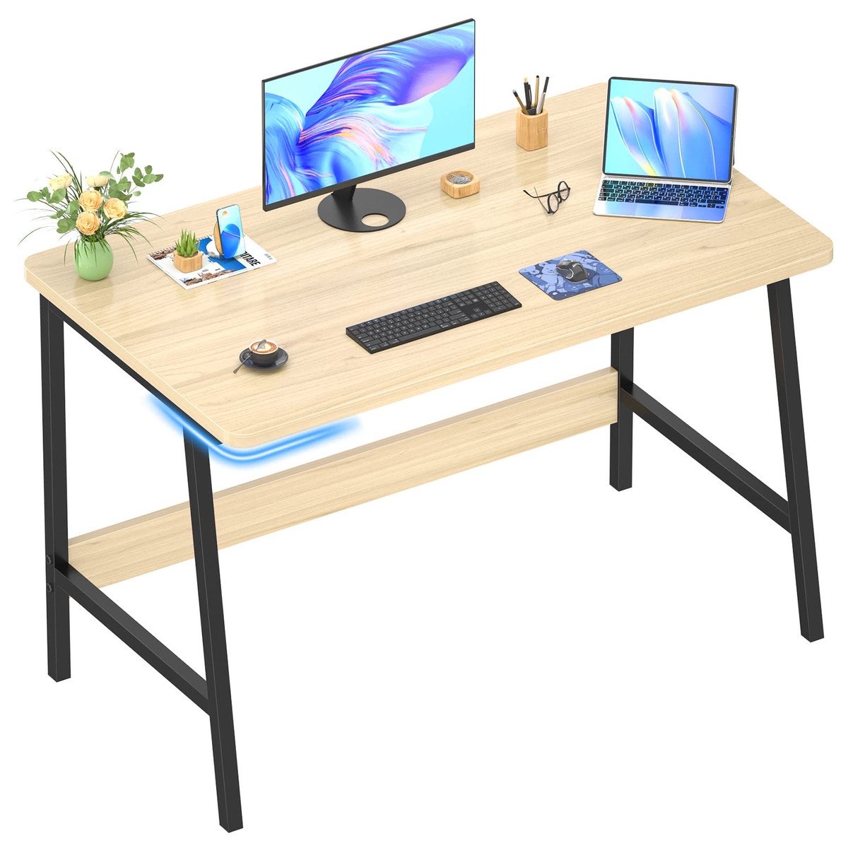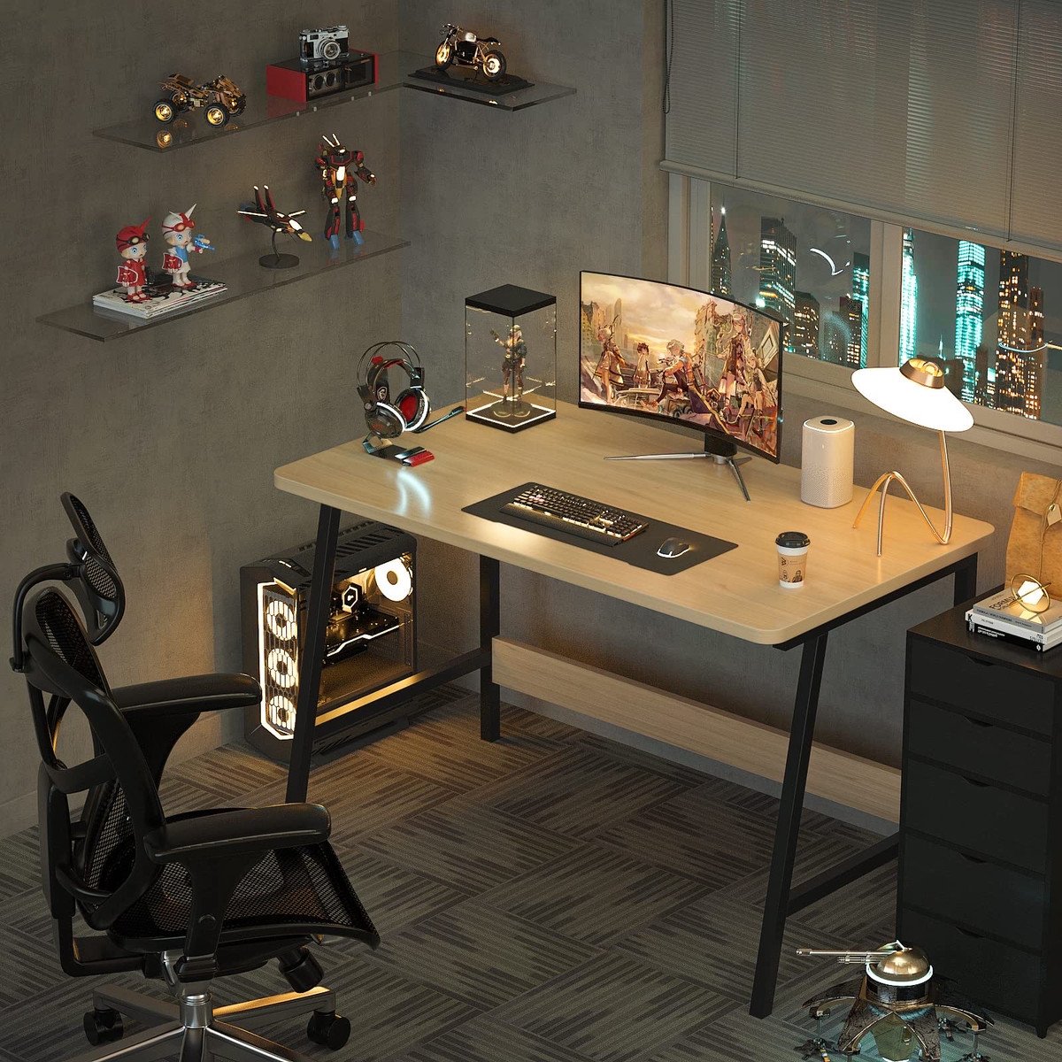 Sturdy Construction: the computer desk is constructed by a high-quality P2 MDF board & a metal frame. The thick metal frame offers a large capacity. ensuring stability and durability. Bearing 250 lbs. and the trapezoidal structure makes it more stable. Adjustable leg pads ensure a sturdy even on uneven ground. the desktop is anti-scratching, waterproof and easy to clean