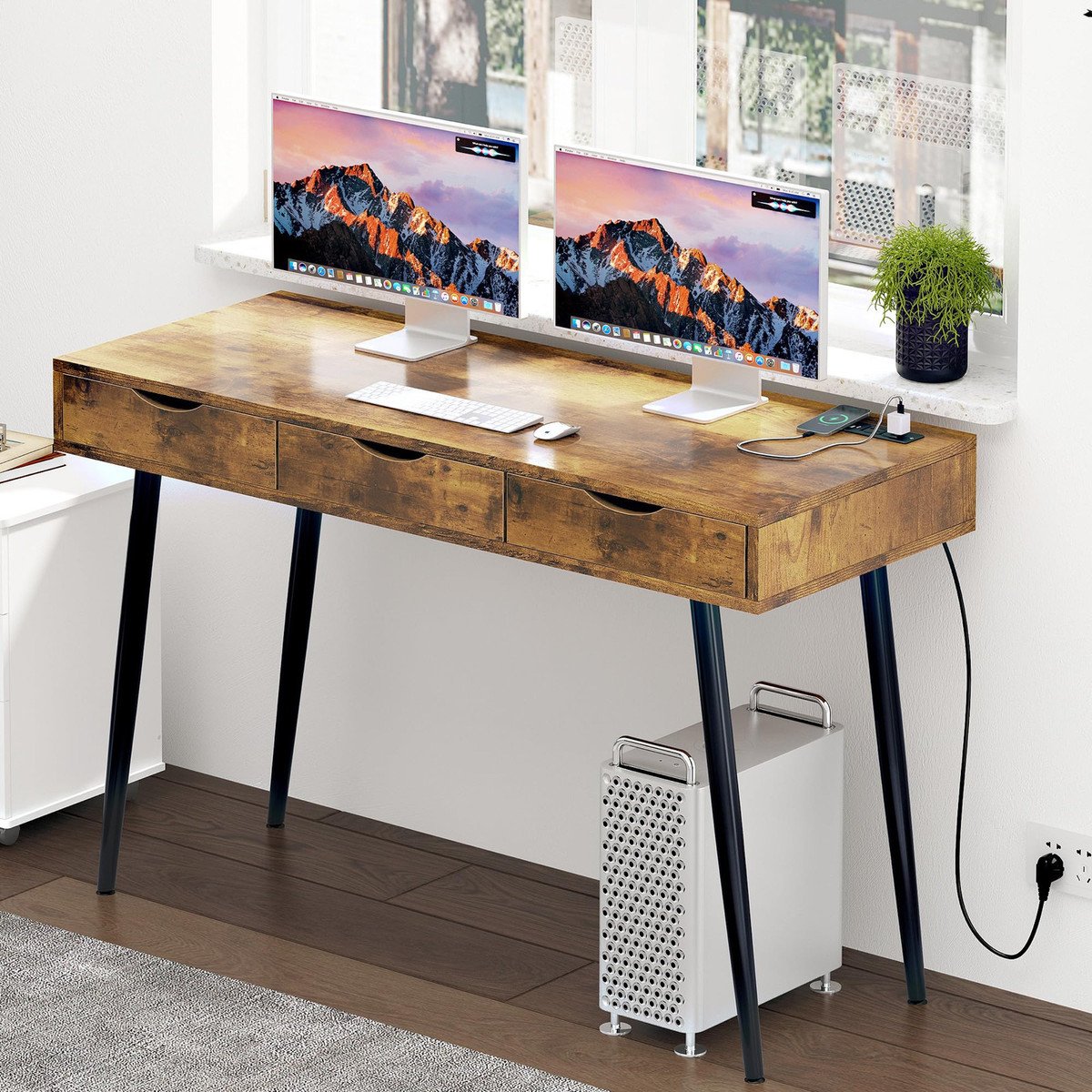Computer Desk Home Office Desk w/ power outlet, 3 drawers