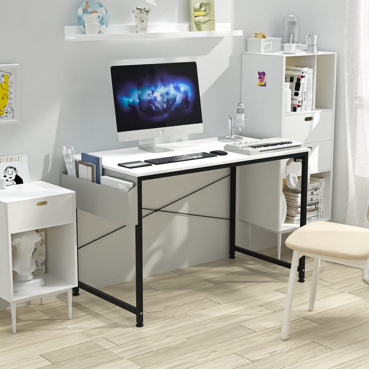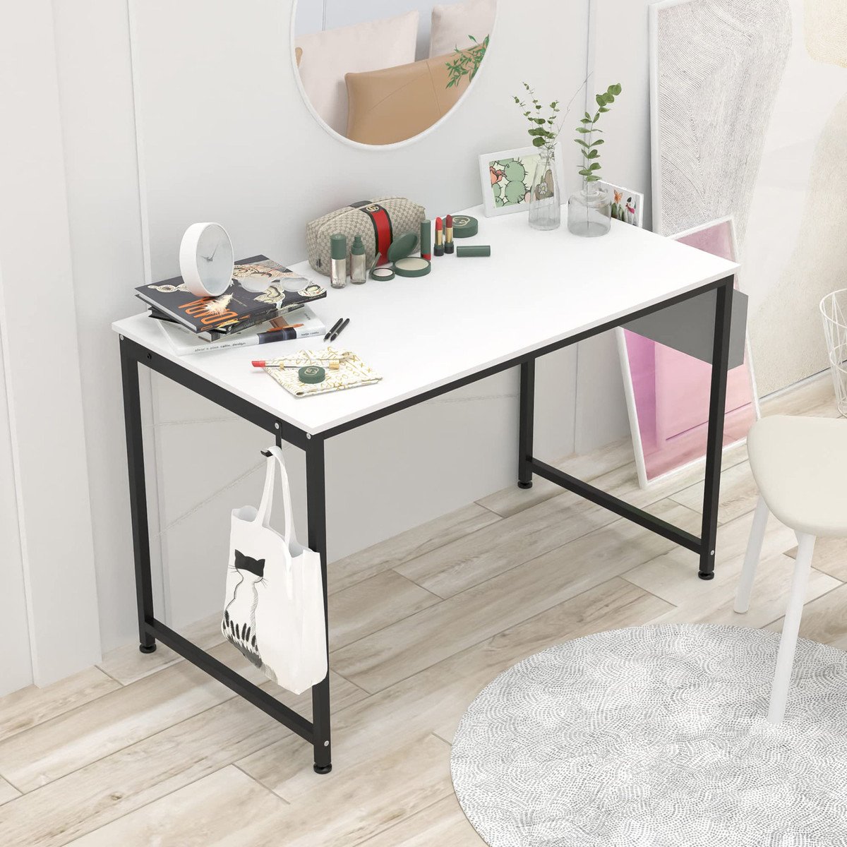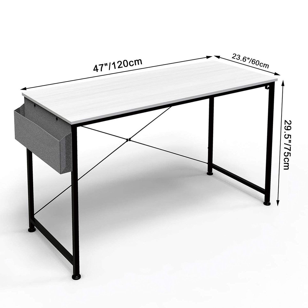 ?Multifunctional and Easy To Use?The upgraded study desk comes with super-exquisite non-woven storage bags and hooks on both sides to help manage your computer table. The hook can fix earphones, bags and other items. The non-woven storage bag will help manage the messy files and books around the work desk, making the desk an organized, tidy and safer work space.