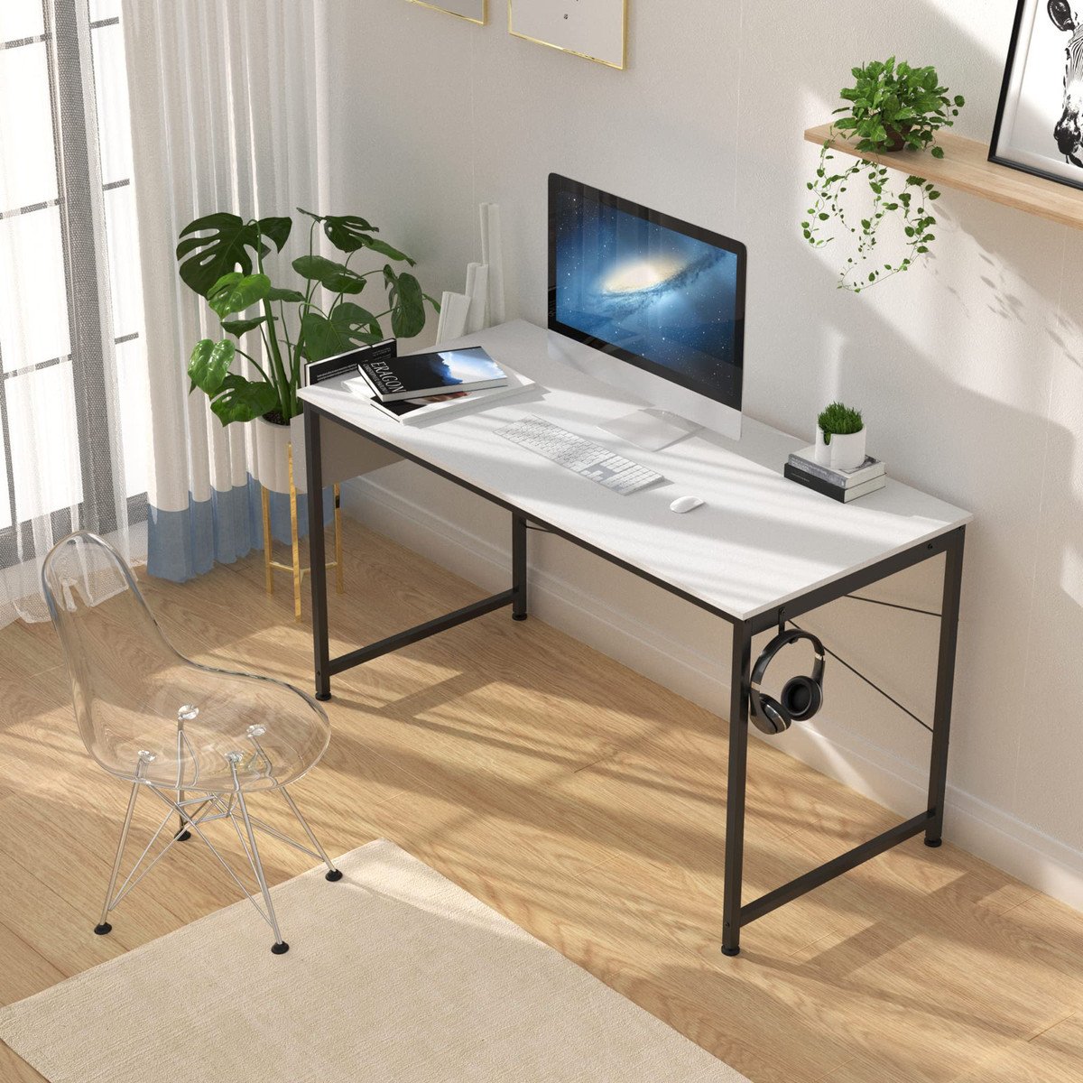 ?High Quality and Durable?This computer desks is made of stronger MDF board and steel frame. Modern tables tops are covered with a special protective layer, which is non-slip, scratch-resistant and easy to clean. And we upgraded the structure, added a steel bar, strengthened the connection point, and made it more stable.