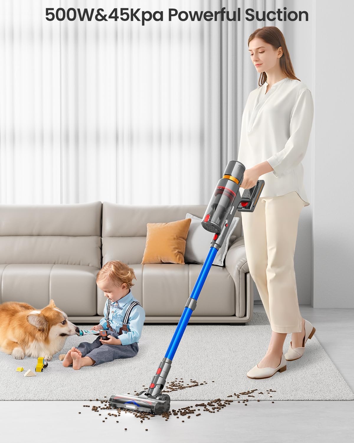 ➤[45000Pa Superior Suction Power]: Equipped with 550W upgraded motor, the cordless vacuum cleaner operates at up to 180,000RPM and delivers 45Kpa of suction power. Easily removes hair, dust, dirt and debris from all floors and carpets.