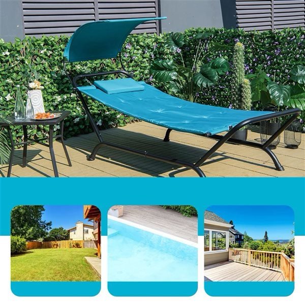 This freestanding hammock with stand and a removable canopy is suitable for various places, like backyard, poolside, patio, garden, porch, deck, balcony, or indoor space. You sit or lie in it to completely relax your body and mind in the cool breeze