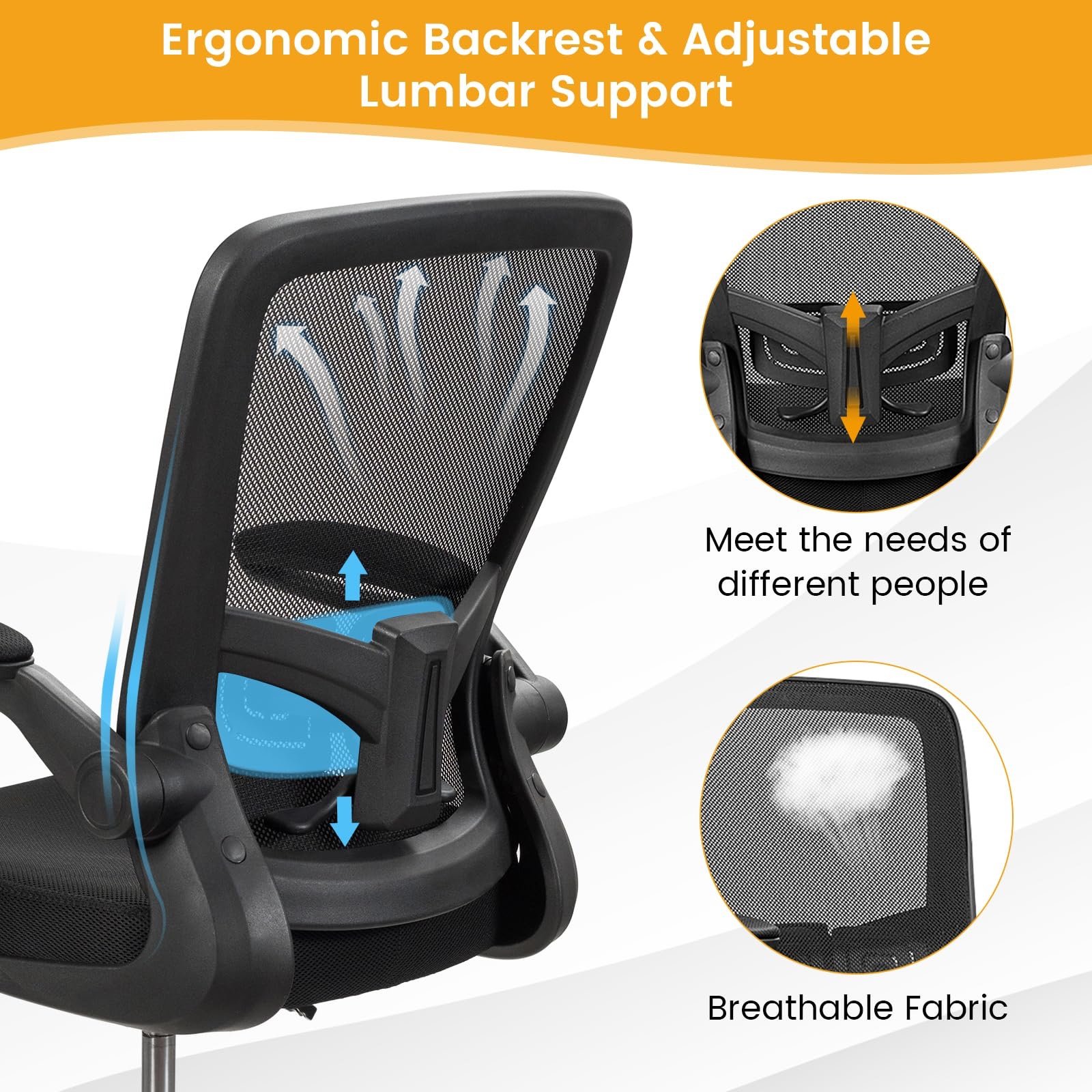 【Flip-up Armrests & Easy Assembly】The computer task chair with flip-up armrests is suitable for study, craft room, living room, conference room, office and more. When not in use, you can flip up the armrests and push the chair under the desk to save space. With detailed instructions, the chair can be put together effortlessly.