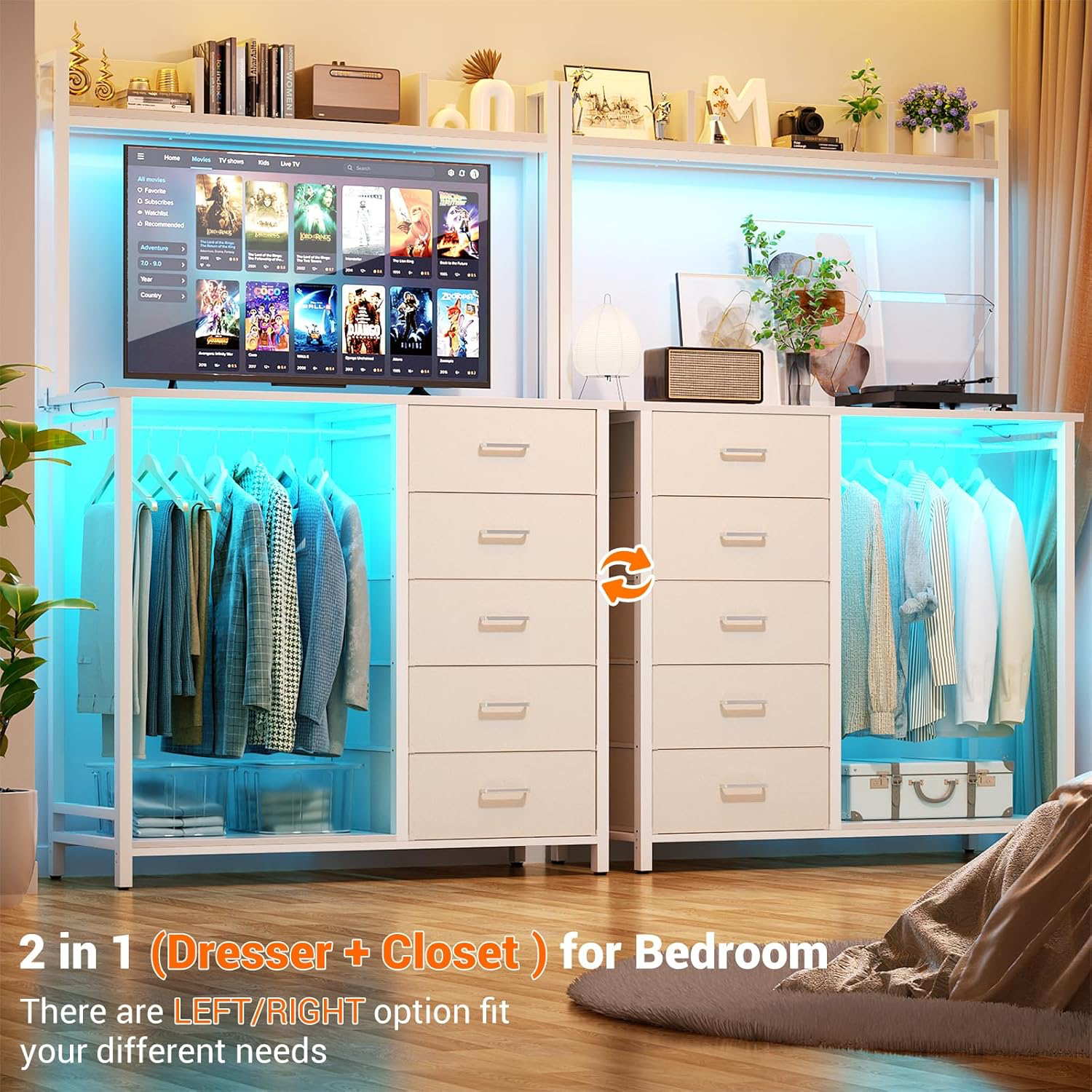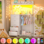 👕【Charming and Magic LED Lights】 This dresser is equipped with 6000+ colors of light strips, can DIY any colors you like. With its timing and rhythm with the music function, you can enjoy and create any atmosphere at home.