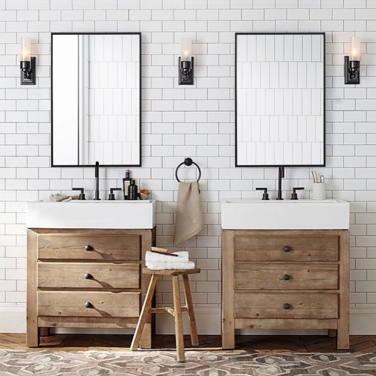 ?Elaborate Design?The rectangle mirror design adds a classical touch to this mirror, while the black metal frame brings a modern and contemporary ambiance to your space. 30*40 size is perfect for use in a variety of spaces, whether in the entryway, hallway, bedroom, or washroom, making it easy to organize your grooming at any time and ensuring you have a perfect state.