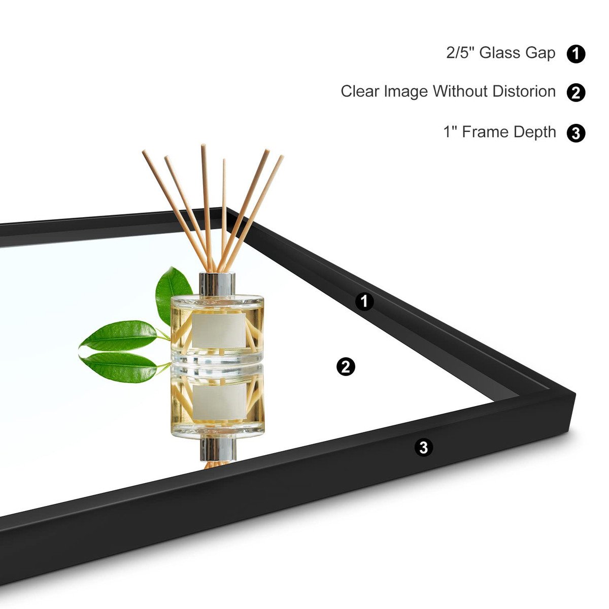 ?HD Mirror?Our rectangular wall mirror without copper material, compared to the general aluminum mirror, the processing process of our mirror is more complex, which ensures that its reflected image is clearer and more realistic, allowing you to get a high-definition visual perception.